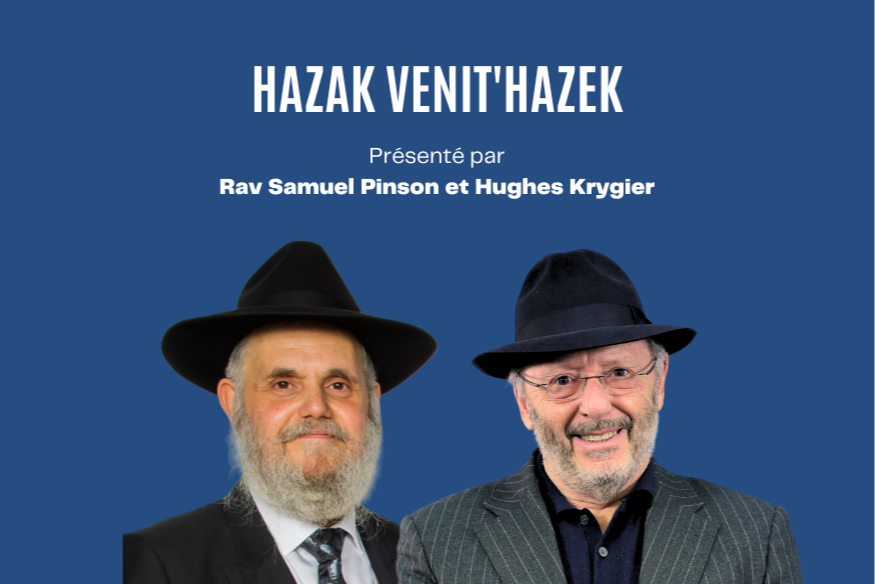 Animée par Rav Pinson, Rabbin de la synagogue Maalé, et Hugues Krygier, « Hazak ve Nithazek » est une émission hebdomadaire abordant de façon ouverte et didactique tous les thèmes qui touchent à notre tradition. L’émission a pour but de toucher un large public désirant être informé sur le judaïsme en l’éclairant sur sa sagesse, son enseignement et sa place dans le monde d’aujourd’hui.